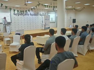 ومن ضمن فعاليات أسبوع الابتكار، أقامت الكلية ندوة تعريفية عن الحماية والملكية الفكرية، قدمها وكيل شؤون المتدربين الأستاذ سلطان العصيمي، حيث تناولت الندوة أهمية حفظ الحقوق الفكرية، ودورها في دعم المبتكرين وتشجيع الإبداع.